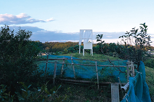 2009年以来顕在化されてきた大東土方エリア特有の地形「モコモコ」。特徴的な起伏を有するグランドアートに5つの「窓辺」を設置。椅子に腰かけ、窓の外に見えるのは、この土地の優しさと美しさです。