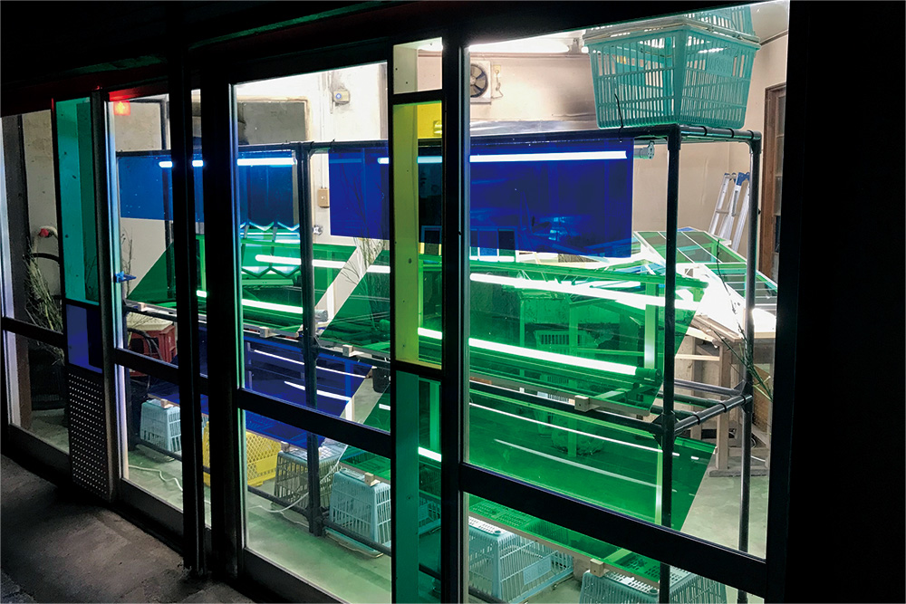 旧図書館の空間に木版画の魚を設置することで水族館のような空間を作った。会期中は展示会場で制作、ワークショップ、イベントなどを企画し、アップデートしていった。フィールドワークとして掛川周辺の水辺の魚を釣り、木版画にした。版画になった魚は淡水のものが多かった(アマゴ、ニジマス、アブラハヤ、カワムツ、ヨシノボリ、ホトケドジョウ、ブラックバス、ブルーギル、ギンブナ) 。版木になる木は掛川森林組合に協力していただき、ヒノキを使用。また和紙は天竜川近くのあたご和紙を入手するために大城さんの工房を訪ねた。